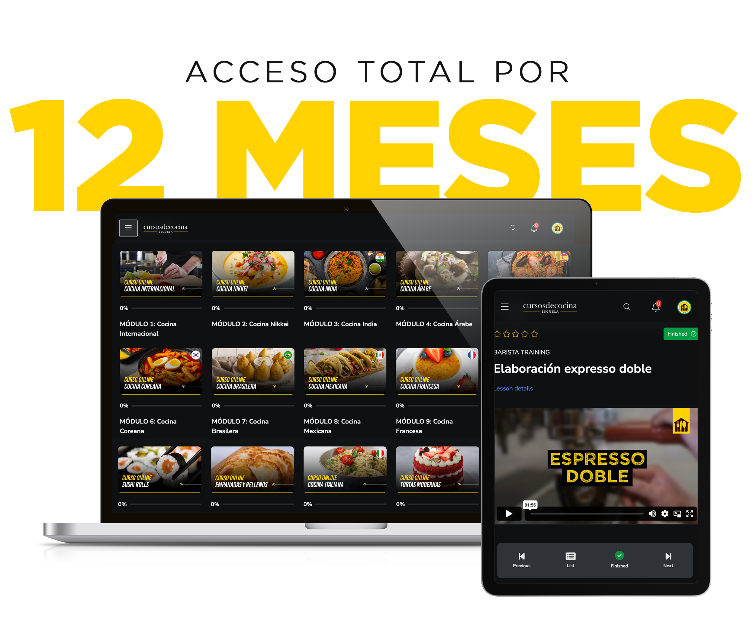 Accede a todos nuestros cursos y perfecciona tus habilidades y técnicas culinarias durante 1 año 😎